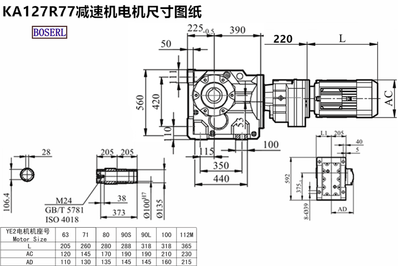 | KA129R79DRE100M4 | KA129RF79DE90S4 | KA129R79DT80K4 | 空心轴减速机 |