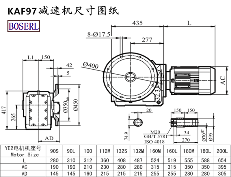 | KAF99D100L4 | KAF99Y180M4 | 二级减速机